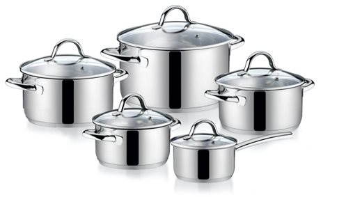 Sada riadu na varenie – na plynovú, elektrickú, indukčnú a sklokeramickú varnú dosku, 5 hrncov v súprave, možnosť použitia neostrého kovového náčinia a možnosť umývania v umývačke, telo tvorí nehrdzavejúca oceľ, antikorový vonkajší povrch hrnca, antikorový vnútorný povrch hrnca, antikorová rukoväť hrnca, pokrievka v balení, strieborná farba Sada hrncov z kvalitnej nerezovej ocele vrátane pokrievok z vysoko odolného žiaruvzdorného skla.Riad, v ktorom sa skvele varí a zároveň sa jednoducho udržiava čistý ocení každá gazdinka. Materiál