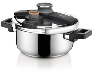 Tlakový hrniec – objem 4 l, vhodný na plynovú, elektrickú, indukčnú a sklokeramickú varnú dosku, sendvičové dno, materiál tela nehrdzavejúca oceľ, antikorový vonkajší povrch, antikorový vnútorný povrch, plastová rukoväť, pokrievka v balení, rozmery 19 × 25 × 37 cm (V׊×D), priemer 22 cm Ak ešte nevlastníte tlakový hrniec, je na čase zvážiť jeho zaobstaranie. Varenie v tlakovom hrnci je zdravšie, rýchlejšie, a preto úspornejšie. Tradičný český výrobca TESCOMA vám ponúka skvelý variant
