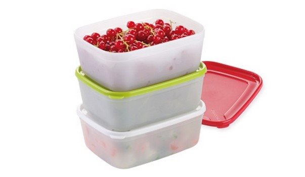 Dózy na potraviny – materiál dózy plast, obdĺžniková, tesniaca, nasadzovacie veko, materiál veka plast, vhodná do mikrovlnnej rúry, umývačky, mrazničky a chladničky, 3 dózy Súprava troch dóz s objemom 1 l od značky TESCOMA s označením…
