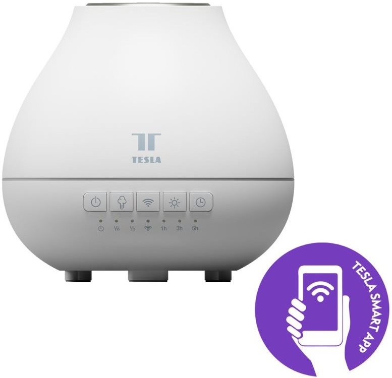 Aróma difuzér – objem nádoby 200 ml, LED podsvietenie, automatické vypnutie a smart (aplikácia), 7 farieb, doba chodu 5 h, odporúčaná veľkosť miestnosti 20 m², biela farba, materiál plast Aróma difuzér Tesla Smart zvládne prevoňať aj väčšie miestnosti a LED svetlo dofarbí atmosféru. Zvlhčovací výkon arómy difuzéra je 30 mililitrov za hodinu, vďaka čomu bez problémov prevonia miestnosti