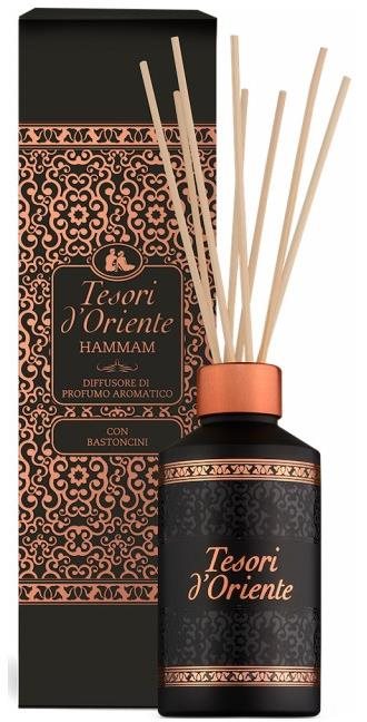 Tyčinkový difuzér – orientálna vôňa s výdržou 56 d, sklenená nádoba, 8 tyčiniek, dĺžka tyčiniek 20 cm, objem 200 ml Vonné tyčinky Hammam Tesori d’Oriente šíria nezameniteľnú vôňu v každom obytnom priestore. Táto kvetinová a zmyselná esencia je zvodná a otvára sa sviežimi tónmi klementínky zmiešanej s kvetom sladkýc
