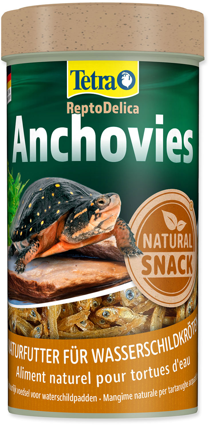 Krmivo pre teráriové zvieratá – doplnkové krmivo, typom krmiva sú ryby, určené pre suchozemské korytnačky a vodné korytnačky, objem 0,25 l Krmivo Tetra Anchovies slúži ako doplnkové krmivo pre vodné korytnačky. Tvoria ho celé ančovičky, ktoré zaistia prirodzenú výživu. Korytnačkám dodajú bielkoviny pre optimálny rast svalov a telesný ras