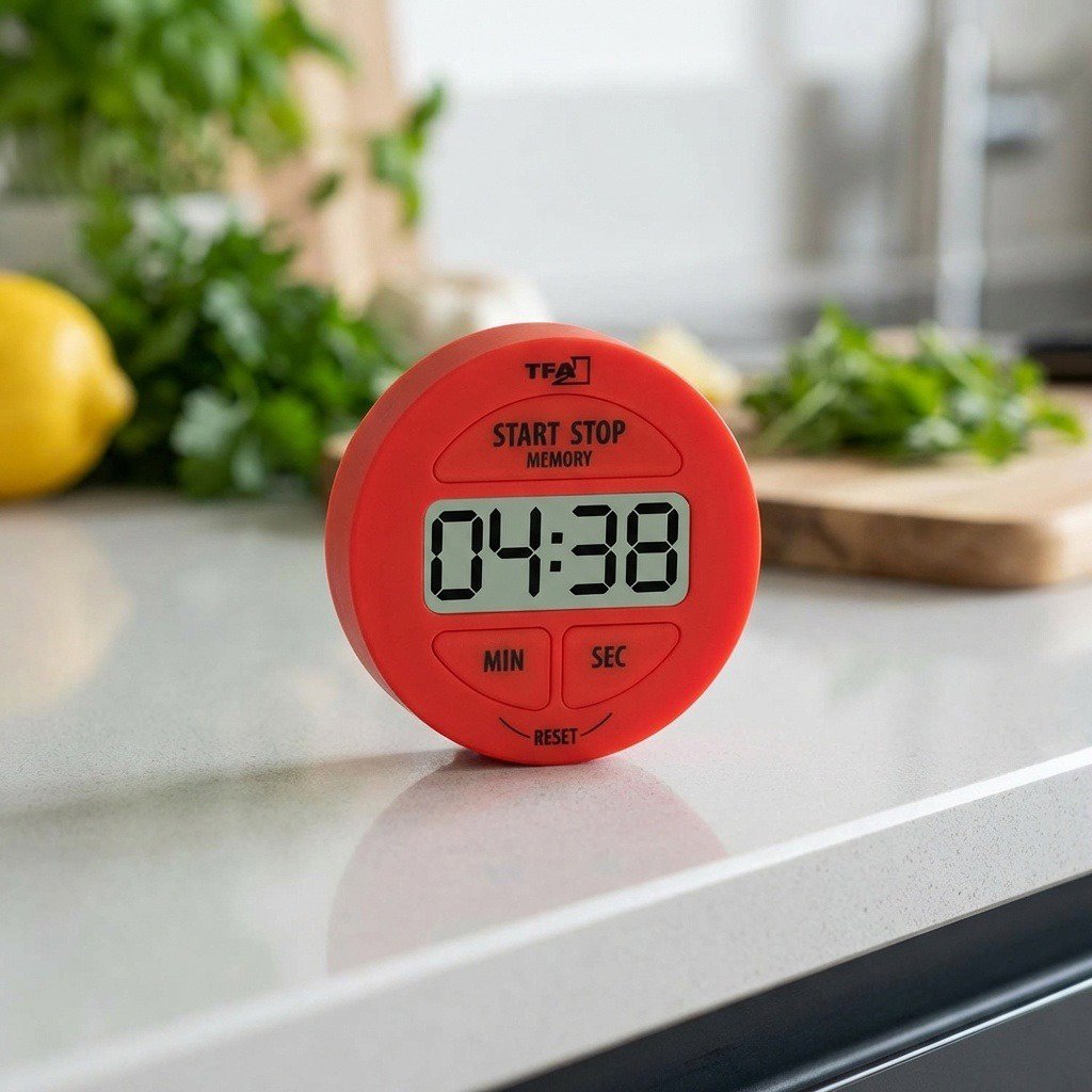 Minútka – digitálna, maximálny čas merania 100 min, s pamäťou, so stopkami, magnet na pripevnenie súčasťou, na 1 CR44/LR44 batériu, materiál plast, červená farba, rozmery 5,5 × 1,7 cm (V×H) Mala by stáť vždy blízko sporáka a príde vhod pri každom varení. Jednoduchá minútka prináša viac zaujímavých funkcií a je výrazne všestrannejšia než mechanické minútky. TFA Digitálna minútka – časovač