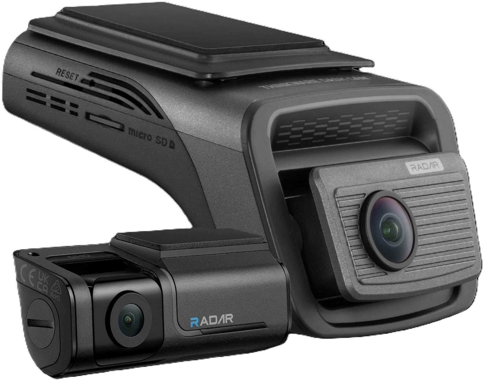 Kamera do auta – profesionálna, duálna, rozlíšenie senzora 8460000 px, uhol záberu 147°, asistenčný systém ADAS, GPS, detekcia radarov, parkovací režim a nočné videnie, max. rozlíšenie videa Ultra HD (3840 × 2160), max. snímková frekvencia 30 sn./s, kompatibilná s pamäťovou kartou micro SD, micro SDHC a micro SDXC do veľkosti 512 GB, podporovaný formát H.264 a MP4, bezdrôtové rozhranie WiFi, bezdrôtové rozhranie Bluetooth a bezdrôtové rozhranie GPS, zadná kamera a pamäťová karta v balení, napájanie zaisťuje superkondenzátor