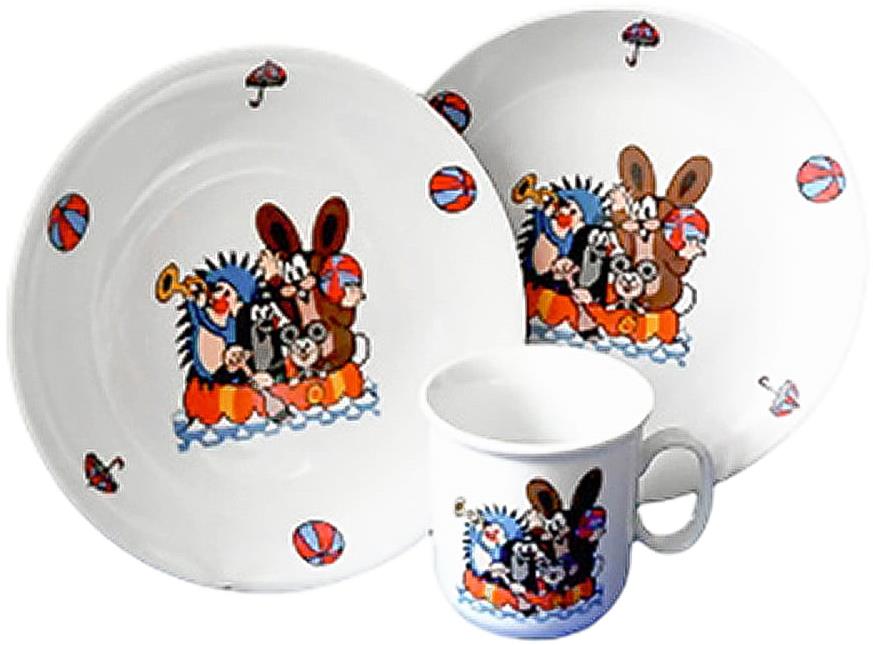 Detská jedálenská súprava – porcelánová, súčasťou balenia je miska, tanier a hrnček, vhodné do mikrovlnnej rúry a umývačky, vhodné od 1 roka, motív rozprávky, viacfarebné vyhotovenie Chcete svojmu dieťaťu spríjemniť stolovanie a zdokonaliť jeho jedálenské schopnosti? V tom prípade bude správnym pomocníkom detská jedálenská súprava Thun. Ponúkanú sadu tvorí miska, tanier a hrnček z