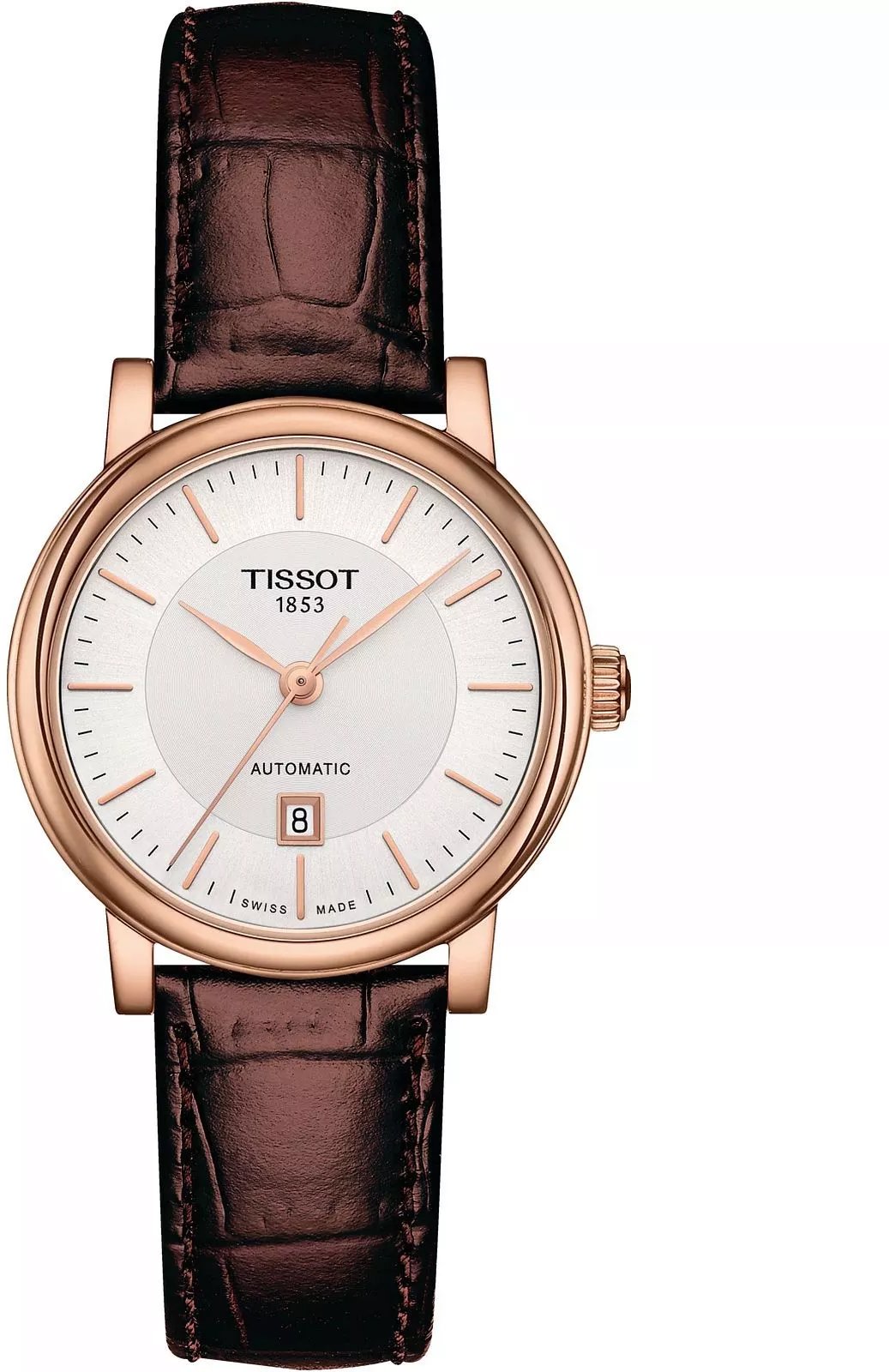 Hodinky dámske – analógové zobrazenie času, automatické, okrúhly ciferník, dátum, rad Tissot Carson Premium Lady, elegantné, bez číslovania, zafírové sklíčko, vodotesnosť 50 m (5 ATM), materiál puzdra nehrdzavejúca oceľ, zlatá farba puzdra, materiál remienka koža, hnedá farba remienka, s vymeniteľným remienkom, vlastný typ zapojenia TISSOT Carson Automatic T122.207.36.031.00 sú pekné dámske hodinky, ktoré určite zaujmú moderným a kvalitným spracovaním. Ponúknu okrúhly ciferník široký 30 mm. Strojček, ktorý je samonaťahovací, vie