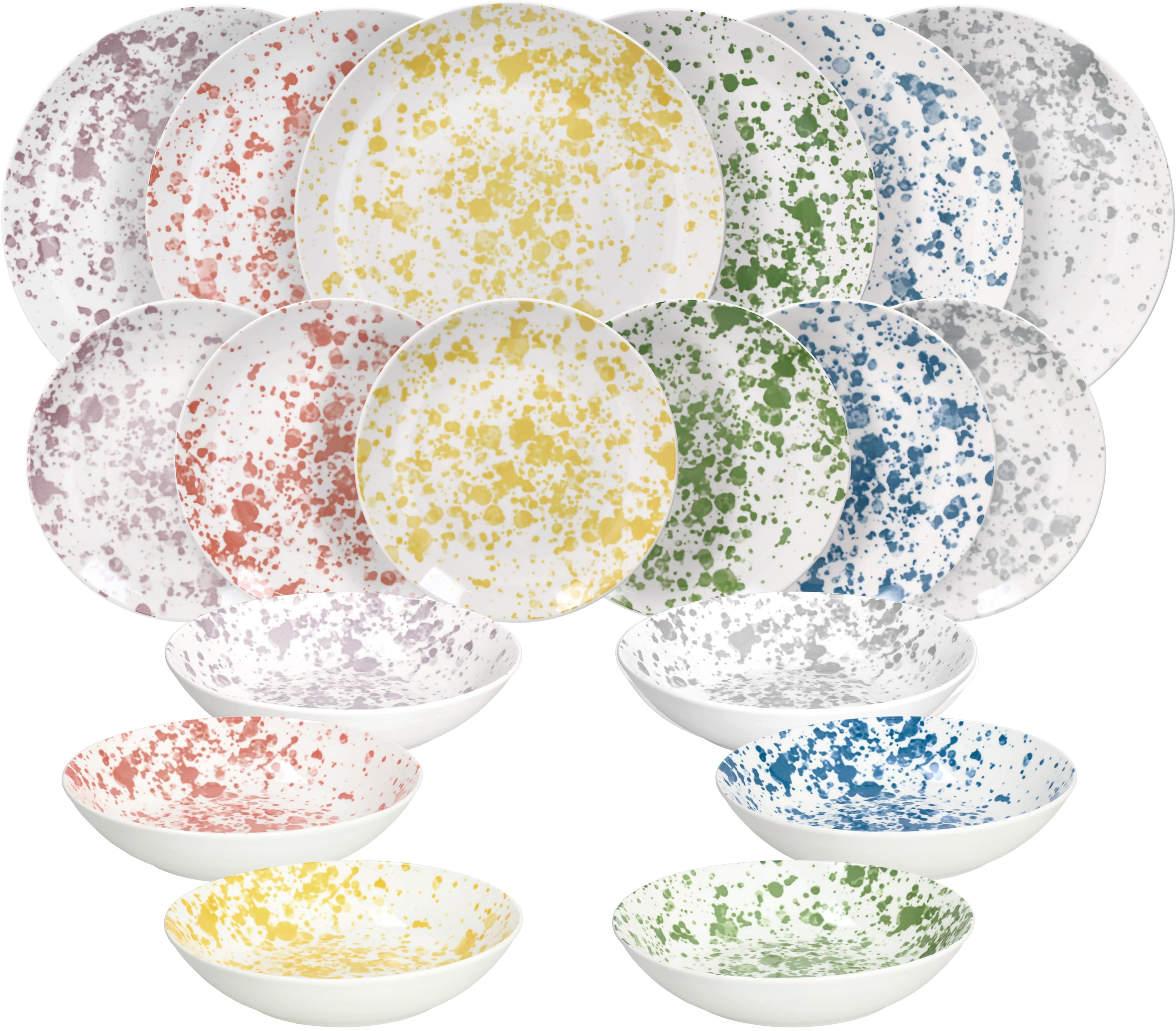 Jedálenská súprava – 18 kusov v súprave, v balení 6 plytkých tanierov, 6 hlbokých tanierov, 6 dezertných tanierov, okrúhly tvar, materiál porcelán, s dekorom, vhodné do umývačky riadu a mikrovlnnej rúry Kvalitný riad si nájde…