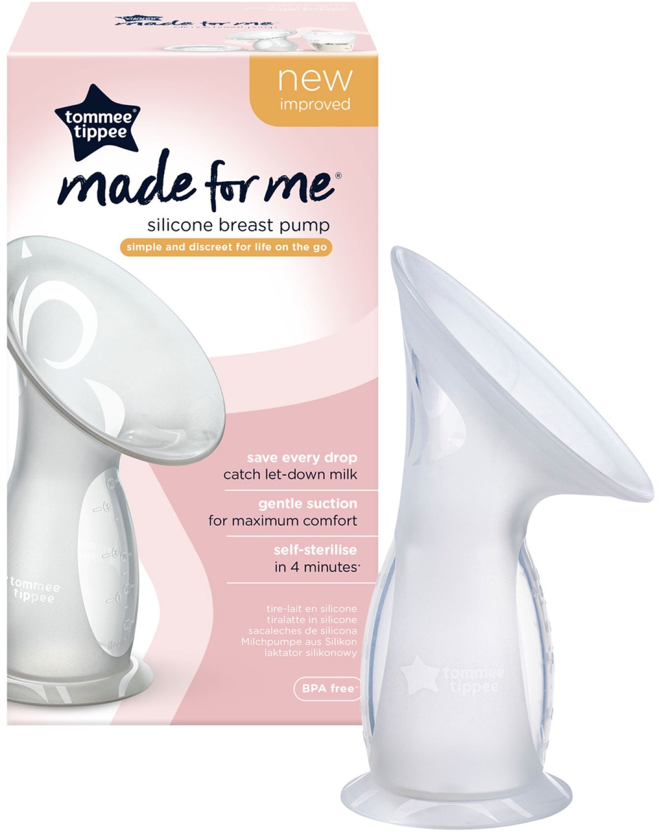 Odsávačka na mlieko manuálna, zásobník na mlieko 150 ml, 1-fázové odsávanie, bez BPA Najjednoduchšia a súčasne nesmierne praktická odsávačka Tommee Tippee Made for Me je celá vyrobená z jemného silikónu. Využijete ju na klasické odsávanie materského mlieka, ale aj na úľavu plným prsi