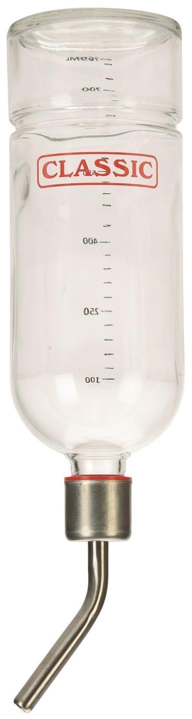 Napájačka – do klietky a do králikárne, objem 750 ml, materiál sklo transparentná, určená pre králika, morča, potkana a trpasličieho králika, zavesenie Napájačka Tommi Classic je vyrobená zo skla. Má kovové náustok s integrovanou guľôčkou a plastové tesnenie. Napájačka Tommi Classic nepreteká a materiál nemožno prehryznúť (garancia výrobcu). Jednoduc