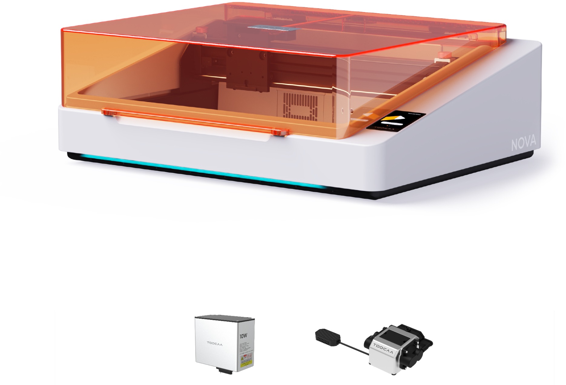 Gravírovací stroj – AI riadená laserová gravírka, 10 W diódový laser, pracovná plocha A4 (297 × 210 mm), rýchlosť gravírovania až 36 000 mm/min, plne uzavretá konštrukcia triedy 1, Air Assist, USB/Wi-Fi pripojenie Stolová laserová gravírka s uzavretou konštrukciouTOOCAA NOVA Basic je kompaktná stolná laserová gravírka s podporou umelej inteligencie, navrhnutá pre jednoduchú, rýchlu a bezpečnú tvo