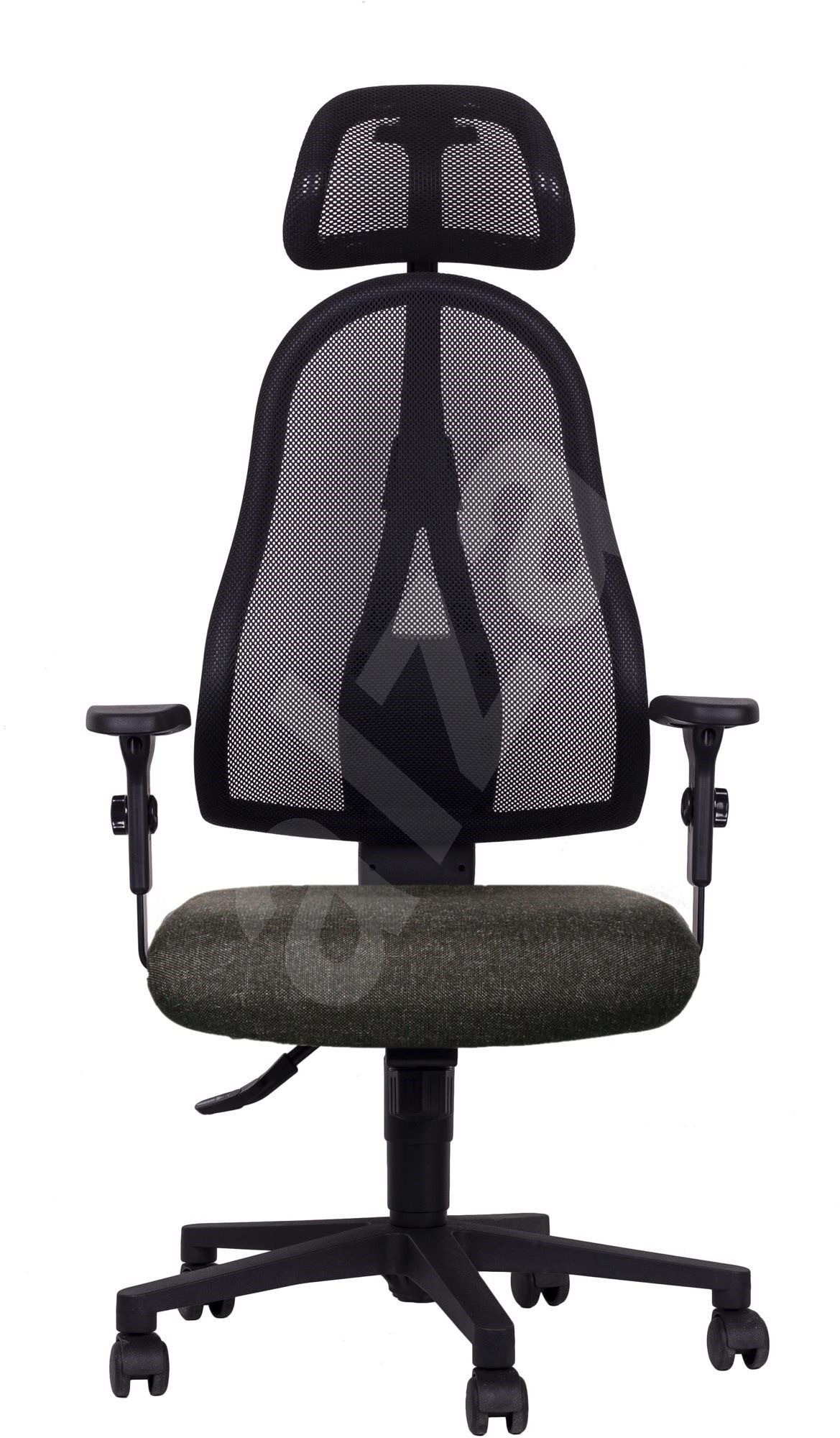 Kancelárska stolička – otočná a ergonomická so synchrónnou mechanikou, nosnosť 110 kg, ploché sedadlo s nastaviteľnou výškou, bedrová opierka, opierka hlavy s nastaviteľnou výškou, operadlo s nastaviteľnou výškou a sklonom, podrúčky s možnosťou nastavenia výšky, plastové kolieska, plastová konštrukcia, materiál poťahu textil a sieťovina, materiál nôh plast, brzdy koliesok vo výbave, šírka 63 cm, hmotnosť 20 kg Zaistite si komfortné pracovné podmienky. Kancelárska stolička TOPSTAR vyhovie špecifickým požiadavkám každého, kto trávi veľa času pred monitorom. Vďaka možnosti nastavenia sklonu operadla, výšky sed
