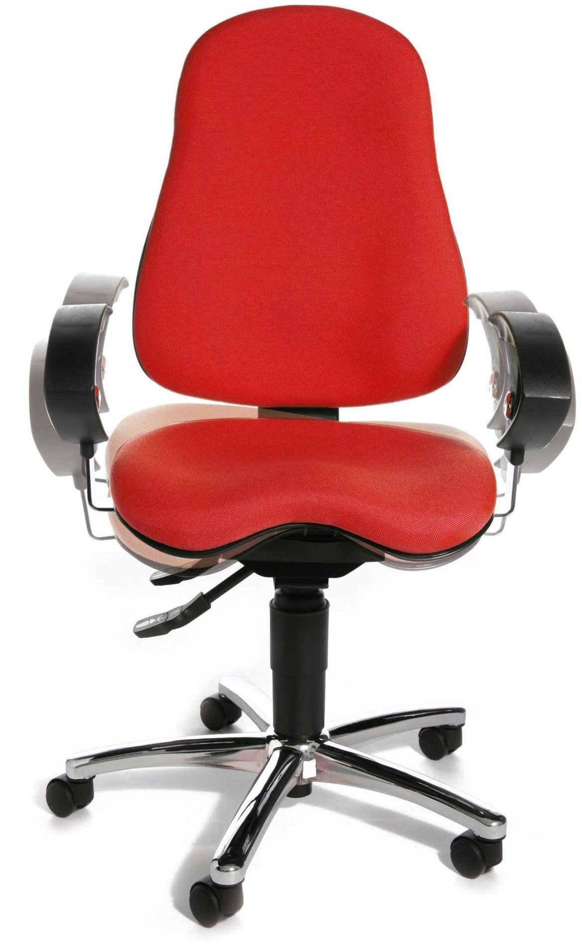 Kancelárska stolička – balančná, otočná a ergonomická, balanční mechanika, nosnosť 110 kg, sedadlo s balančnými prvkami a s nastaviteľnou výškou, bedrová opierka, operadlo s nastaviteľnou výškou a sklonom, podrúčky s možnosťou nastavenia výšky, plastové kolieska s priemerom 5 cm, plastová a kovová konštrukcia, materiál poťahu textil, materiál nôh kov, brzdy koliesok vo výbave, šírka 65 cm, nutná montáž, hmotnosť 17 kg Zaistite si optimálne podmienky na prácu. Kancelárska stolička TOPSTAR uspokojí špecifické požiadavky každého, kto dlho sedí pred počítačom. Vďaka možnosti nastavenia sklonu operadla, výšky sedadla a