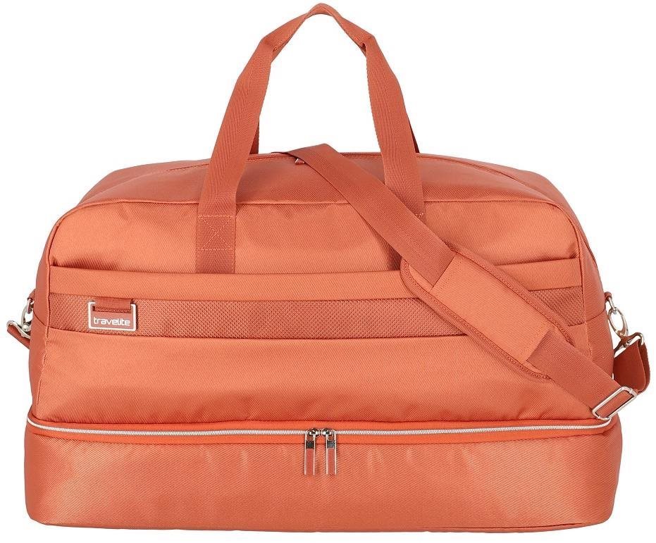 Športová taška na rameno – unisex, objem 68 l, zapínanie na zips, možnosť nosenia v ruke, teleskopické a horné držadlo, popruhy na ramená a vystužené dno, materiál polyester, rozmery 35 × 60 × 31 cm (V׊×H), oranžová farba Športová taška Travelite Miigo Weekender Copper/chutney disponuje veľkou spodnou priehradkou, samostatnou priehradkou na bielizeň a veľkým vreckom na zips. Súčasťou tašky je ramenný popruh amožnosť pr