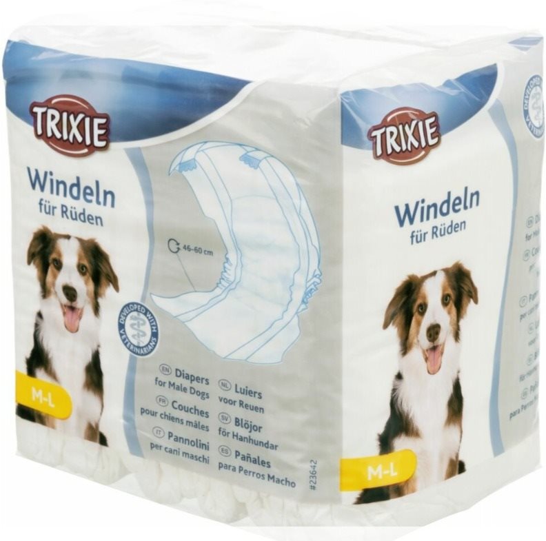 Plienky pre psov – riešia problémy s inkontinenciou u starších alebo chorých psov, veľkosť: M – L, obvod pása 46 – 60 cm, 12 ks v balení, vysoko absorpčné Papierové plienky Trixie uľahčia hygienu psa samca pri inkontinencii a sú vhodné po operáciách. Využitie nájdu aj pri dlhom cestovaní, kedy nie je možné psa počas cesty vyvenčiť. Jednorazové plienky z