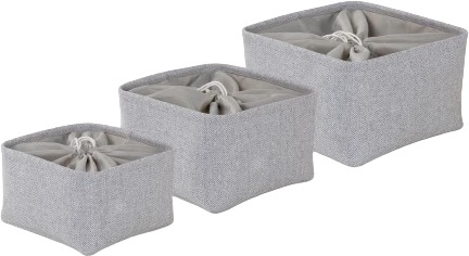 Úložný box – skladovací, na kozmetiku, materiál textil, rozmery 18 × 30 × 30 cm (V׊×H), sivá farba, 3 ks v balení Úložný box Möve je skvelým riešením na uskladnenie, organizáciu a transport rôznych predmetov. Zaisťuje dostatok priestoru napríklad na kozmetiku. V balení sa nachádzajú dohromady 3 kusy. Hlavné vlast