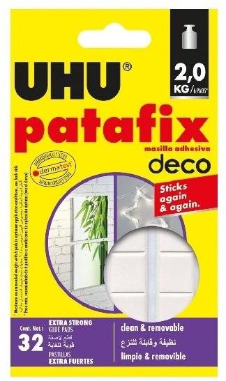 Lepidlo – špeciálne, Lepidlo UHU Patafix Homedeco 32 ks je praktická samolepiaca snímateľná guma, ktorá umožňuje rýchle a čisté upevnenie malých predmetov na rôzne povrchy vrátane dreva, omietky, skla, kovu, plastov a por