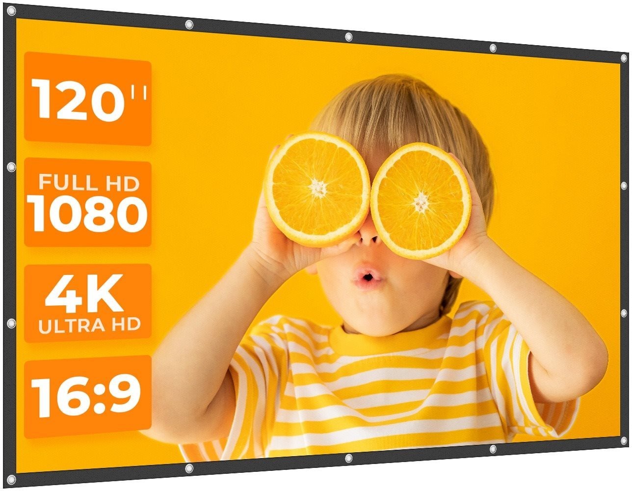 Premietacie plátno rámové, rozmer 264,16 × 147,32 cm, uhlopriečka 120″, pomer strán 16 : 9, biele plátno, čierne okraje, biela, umiestnenie: na stenu Premietaním na stenu nikdy nedosiahnete na kvalitu obrazu, ako keby ste použili plátno na projektor. Rámové premietacie plátno Vankyo ponúka používateľovi uhlopriečku 120″ s pomerom strán 16 : 9. Kvôl