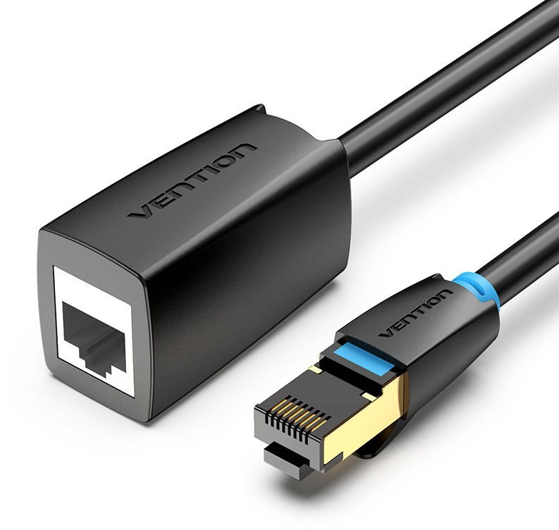 Sieťový kábel 5 m – predlžovací, male konektory: 1× RJ-45 (CAT8), female konektor 1× RJ-45, s pozlátenými konektormi, tienený, tienenie S/STP, rovné zakončenie Sieťový kábels rýchlosťou 40 Gbps. Sieťový kábel Vention podporuje šírku pásma až 2…