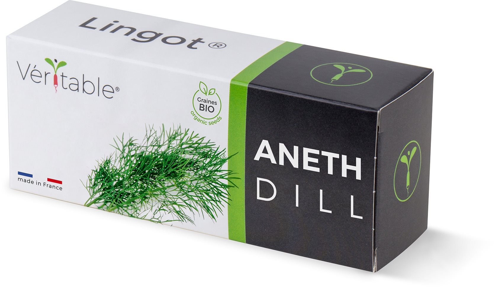 Sadenice – bylinky a liečivé rastliny, kôpor, kompatibilné s inteligentnými kvetináčmi Véritable, doba klíčenia 1 – 2 t, doba zberu 122 – 183 d Sadenice Véritable LingotKôpor – BIOSubstrát Véritable Lingot so semienkami kôpor – BIO je špeciálne určený pre inteligentné kvetináče Véritable. Balenie obsahuje semienka chemicky neošetrených rastlí