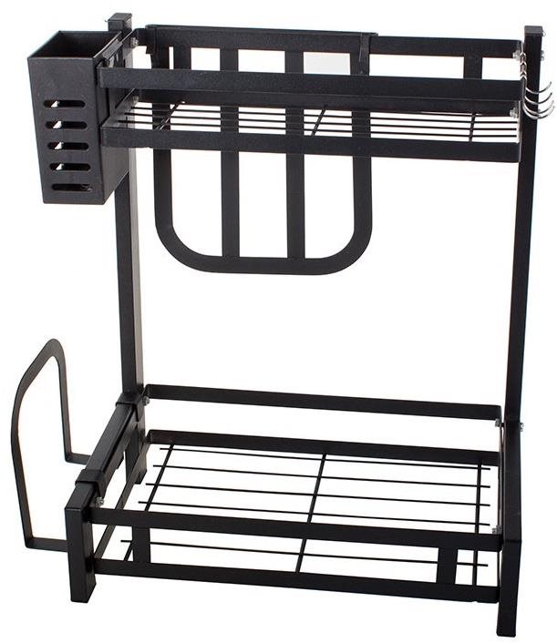 Organizér do kuchyne – na pracovnú dosku, vhodný na fľaše/plechovky, riad, kuchynské nástroje, lopáriky a príbory, materiál kov, rozmery 35 × 40 × 22,5 cm (Š×V×H), čierna farba