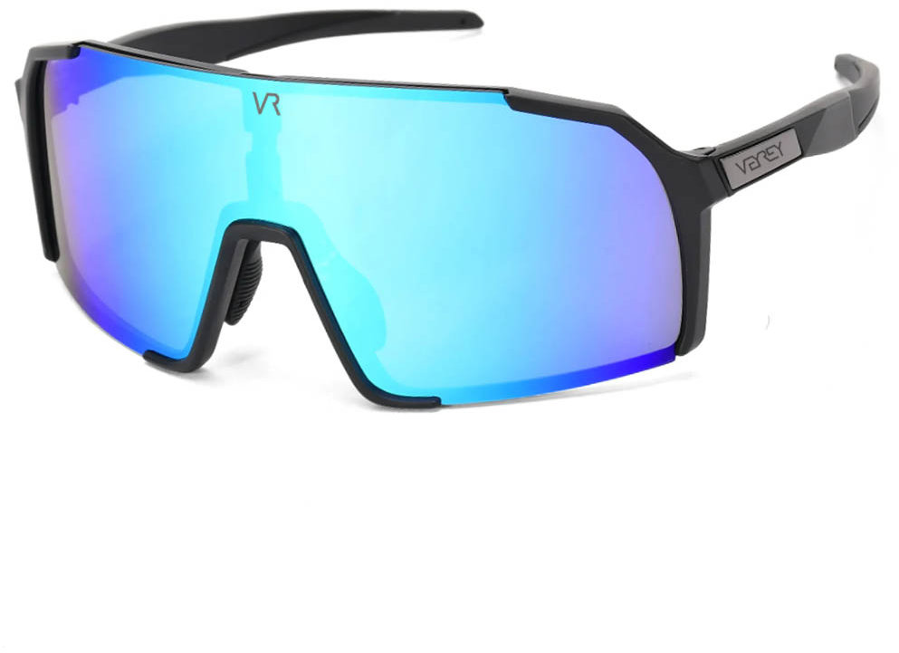 Cyklistické okuliare – unisex, rozjasňujúce, vodoodpudivé, nezahmlievajúce sa a s REVO technológiou, modrá farba skiel, 15 % priepustnosť, svetelná priepustnosť S3, materiál skiel polykarbonát, protišmykové a mäkčené nožičky, s rámom, čierna farba rámika, UV ochrana UV400, rozmery zorníkov 4 × 4 cm (V׊), dĺžka nožičiek 14 cm, šírka nosníka 2 cm, hmotnosť 30 g Detské slnečné okuliare Veyrey Wegub sú športové a cyklistické okuliare vhodné pre deti od 5 do 14 rokov. Využijú ich aj dospelí muži a ženy s úzkou tvárou. Sú vybavené nastaviteľným nosníkom, vďaka č