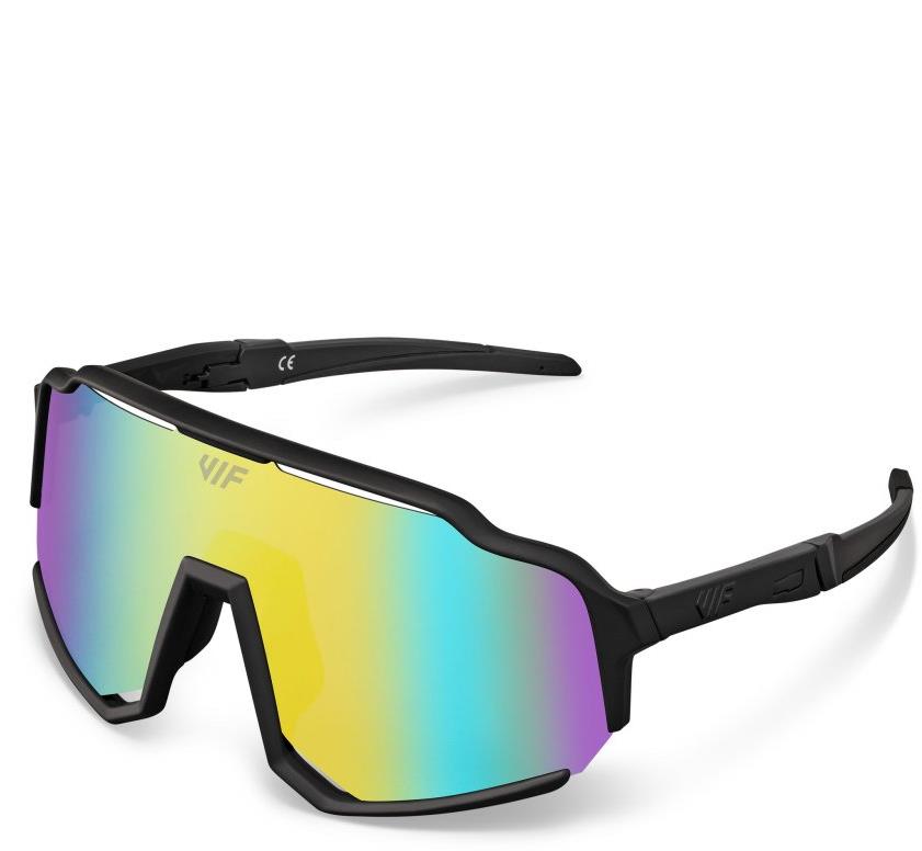 Cyklistické okuliare – unisex, tmavnúce, polarizačné, nezahmlievajúce sa, protitrieštivé a s REVO technológiou, čierna a zlatá farba skiel, svetelná priepustnosť S2 a S3, materiál skiel polykarbonát, panoramatický výhľad, pružný rám, protišmykové a mäkčené nožičky, s rámom, čierna farba rámika, mäkký nosník súčasťou, UV ochrana UV400, UVA a UVB, rozmery zorníkov 6,5 × 14 cm (V׊), dĺžka nožičiek 16,5 cm, hmotnosť 30 g Slnečné okuliare VIF Two #AceOfShades vynikajú svojou ľahkosťou, odolnosťou a inovatívnym dizajnom. Rám z materiálu TR90 (Grilamid) váži iba 32 gramov a zaisťuje maximálny komfort aj pri celodennom no