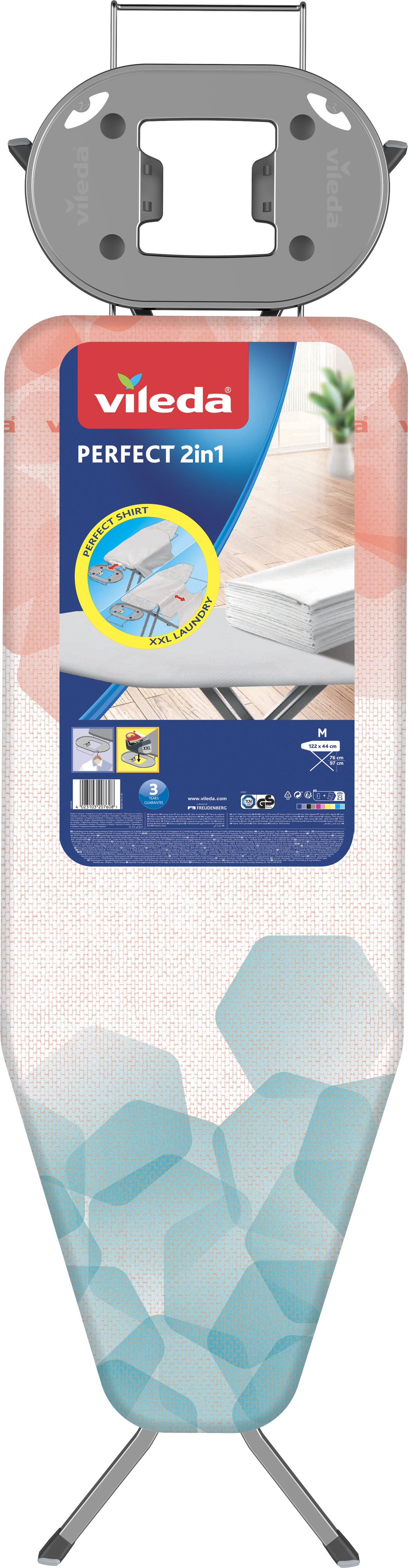 Žehliaca doska – dĺžka plochy na žehlenie 122 cm, šírka plochy na žehlenie 44 cm, minimálna výška 750 mm, maximálna výška 95 cm, nastaviteľná výška, držiak na žehličku, zásuvka s káblom a vhodné pre parné generátory Väčšinu času stojí nenápadne bokom a naozaj ju oceníte kedykoľvek, keď budete donútený chopiť sa žehličky. Žehliaca doska VILEDA Perfect 2v1 Plus je prakticky konštruovaná a dobre stabilizovaná so šír