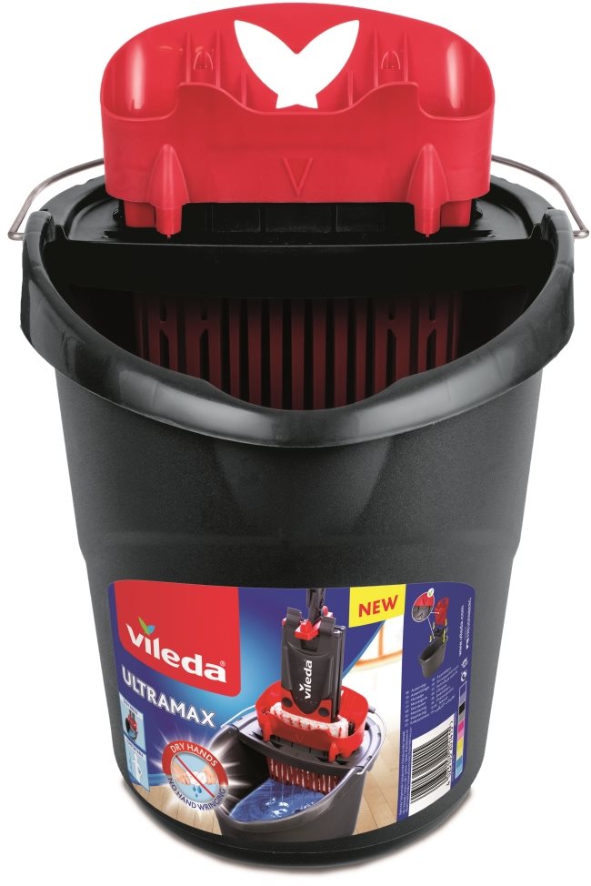 Vedro – oválne, plastové, s výlevkou, rukoväť a žmýkací kôš v balení, čierna farba, objem 10 l, rozmery 25 × 36 cm (V×D) VILEDA Ultramax vedro s košom slúži ako doplnkové príslušenstvo mopu Microfibre 2 v 1 s teleskopickou tyčou pre dokonalú čistotu vo vašej domácnosti. Mop si hravo poradí so zašlou špinou a umožní