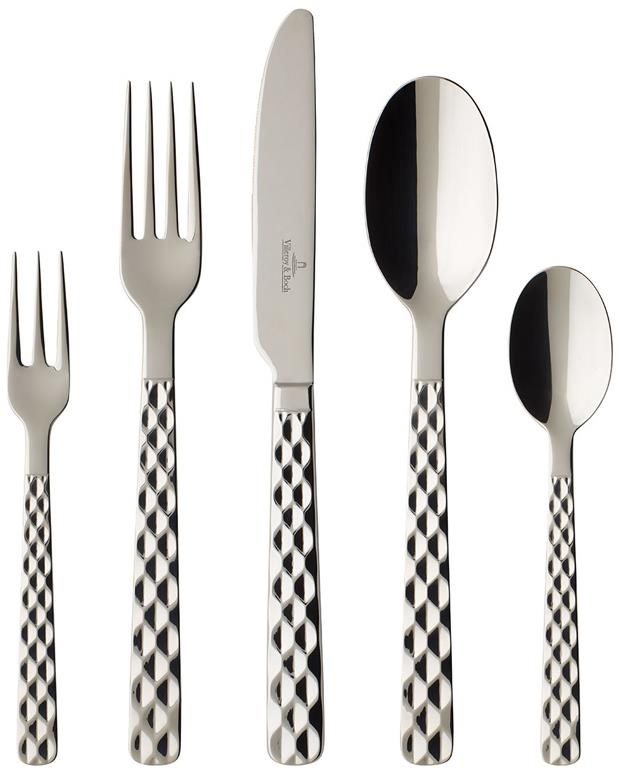 Súprava príborov – jedálenská vidlička, jedálenský nôž, jedálenská lyžica, čajová lyžička a dezertná vidlička, vhodné do umývačky, antikorové, 6 súprav s celkovým počtom 30 ks Zásadné vlastnosti sady príborov VILLEROY & BOCH BOSTON, 30 ks Sada príborov Villeroy & Boch zvýrazní každý váš kulinársky zážitok V balení sa nachádza jedálenská vidlička, jedálenský nôž, jedálenská