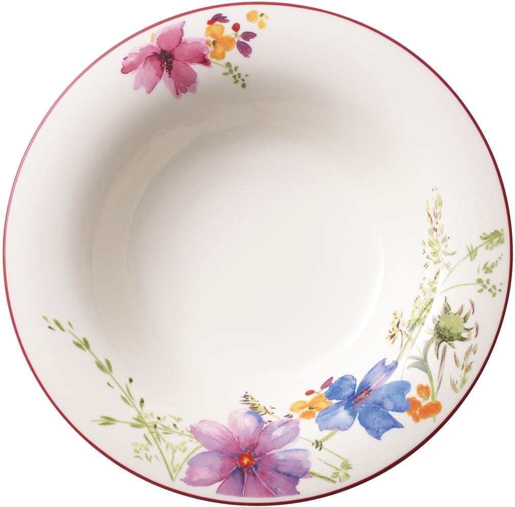 Tanier – porcelánový, vhodný do umývačky a mikrovlnnej rúry, viacfarebný, hlboký, univerzálne použitie, okrúhly, klasický dizajn, kvetinový motív, priemer 23 cm, výška 4,5 cm, hmotnosť 450 g Kľúčové prednosti taniera VILLEROY & BOCH MARIEFLEUR, 23 cm Tanier Villeroy & Boch využijete v domácnosti aj jedálňach Tento hlboký tanier je perfektným variantom pre polievku, šalát aj iný pokrm Jeho