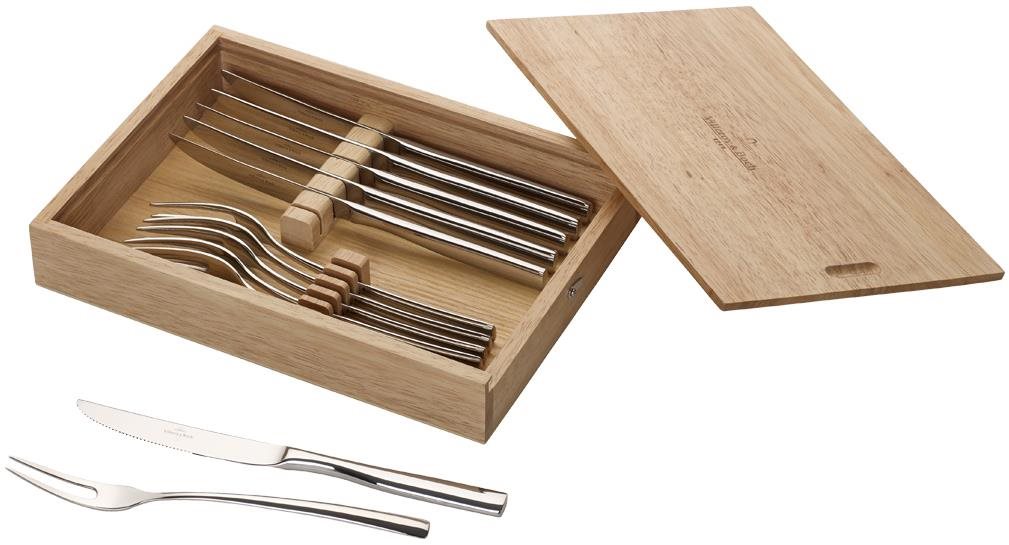 Súprava príborov – steakový nôž a steaková vidlička, vhodné do umývačky, antikorové, 6 súprav s celkovým počtom 12 ks Hlavné prednosti sady príborov VILLEROY & BOCH PIEMONT Steakový príbor, 12 ks Sada príborov Villeroy & Boch vás poteší pri stolovaní V balení sa nachádza steakový nôž a steaková vidlička Materiálom je