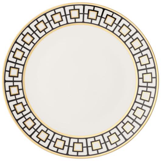 Tanier – porcelánový, biela, čierna a zlatá farba, plytký a dezertný, univerzálne použitie, okrúhly, retro dizajn, geometrický motív, priemer 16 cm, 1 dezertný tanier Zásadné prednosti taniera Villeroy & Boch Tanier na pečivo Metrochic Tanier Villeroy & Boch môžete používať doma aj na chalupe Pre hlavné chody je najlepším variantom tento plytký tanier Dezertným tan