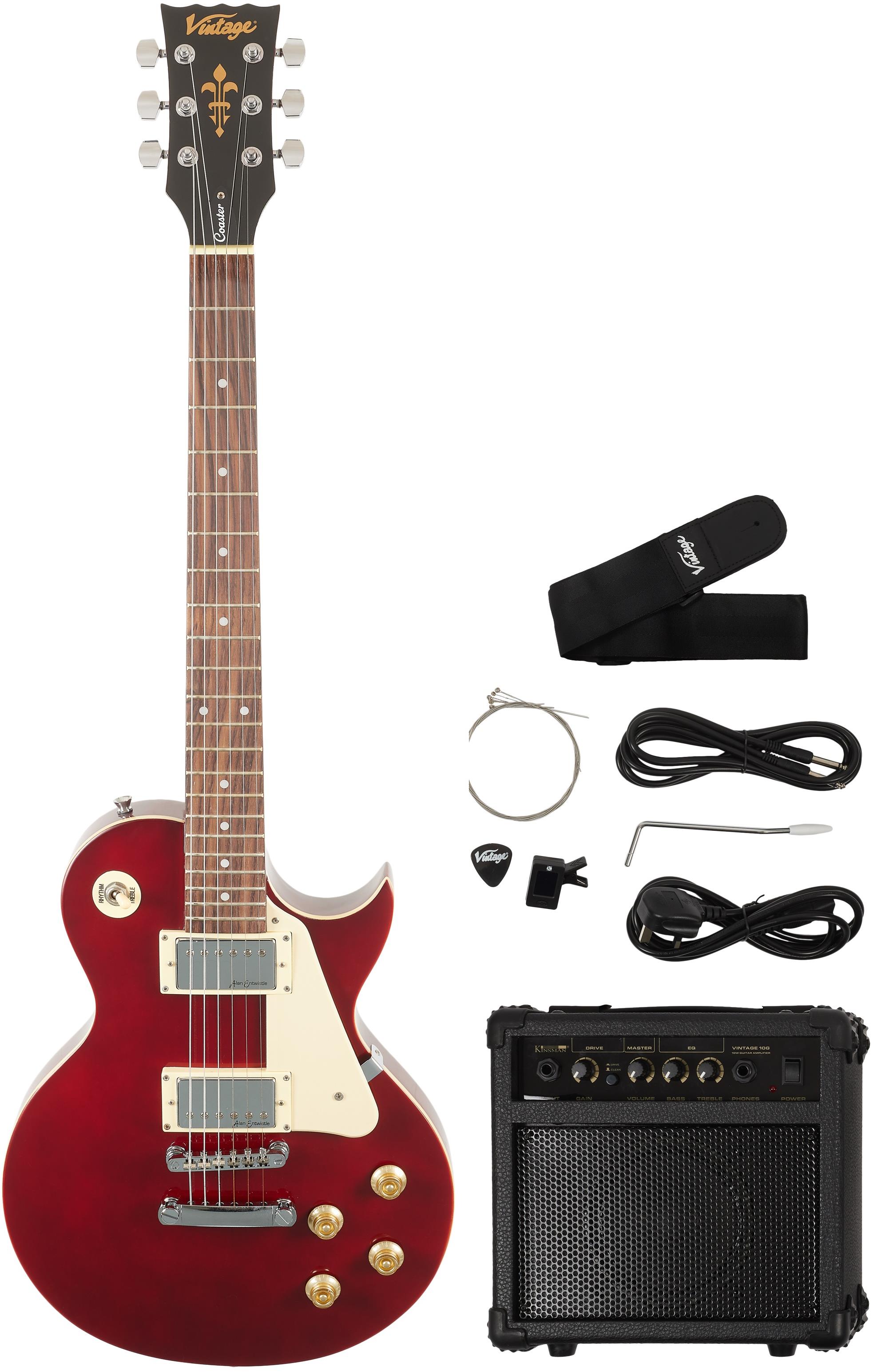 Elektrická gitara – 6 strún, telo Single Cut, typ snímačov humbucker, trojpolohový prepínač snímačov, 22 pražcov, menzúra 628 mm, šírka nultého pražca 43 mm, lesklá povrchová úprava, telo lipa, krk javor, hmatník palisander, hardvér chróm, balenie obsahuje kombo, ladičku a obal Uvažujete o zakúpení novej gitary? Elektrická gitara VINTAGE poteší príjemným zvukom a dodá vašej hre šmrnc. Táto elektrická gitara vám môže ponúknuť menzúru s dĺžkou 628 mm a nultý podval so šírkou 4