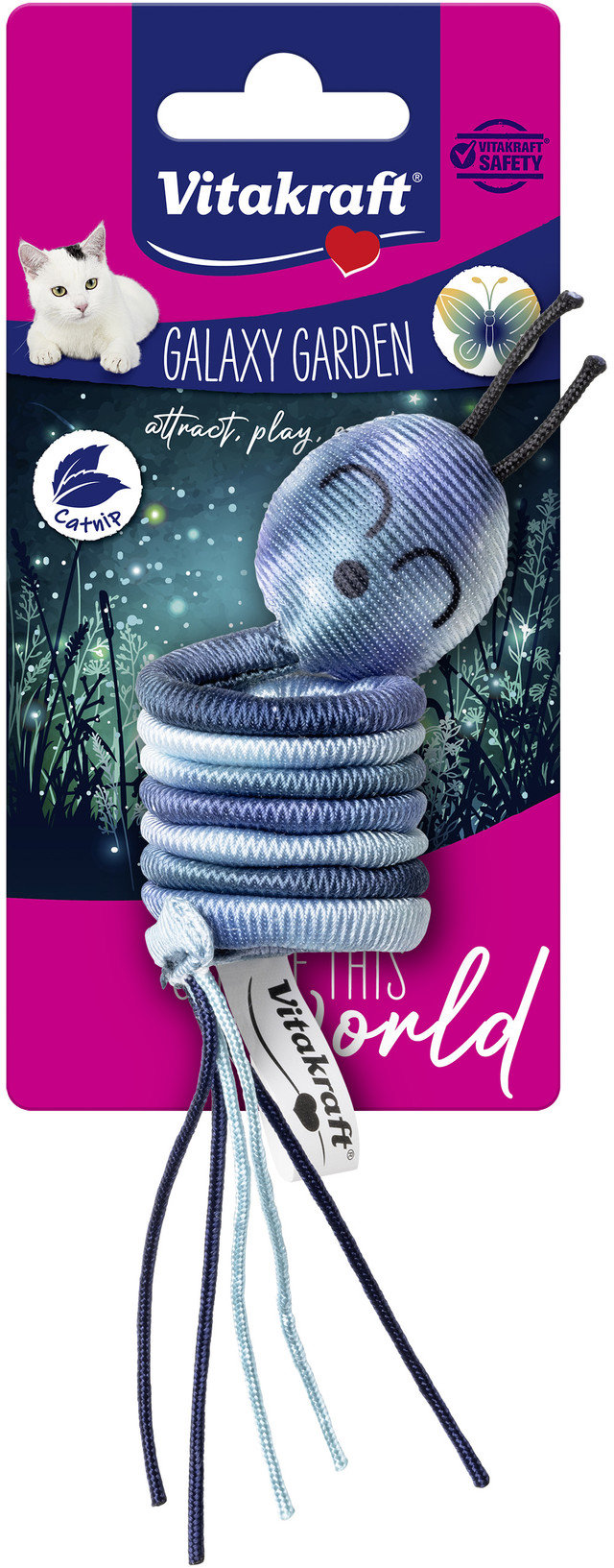 Hračka pre mačky – obsahuje kocúrnik obyčajný, veľkosť 16 cm, materiál s kocúrnikom obyčajným a polyester Hračka pre mačky Vitakraft Galaxy Garden má pružné a pritom mäkké telo plnené šantou mačacou. Vďaka tomu láka miláčikov k hre a dokáže nadchnúť aj tie menej aktívne. Pružina so strapcami sa hýbe, sti