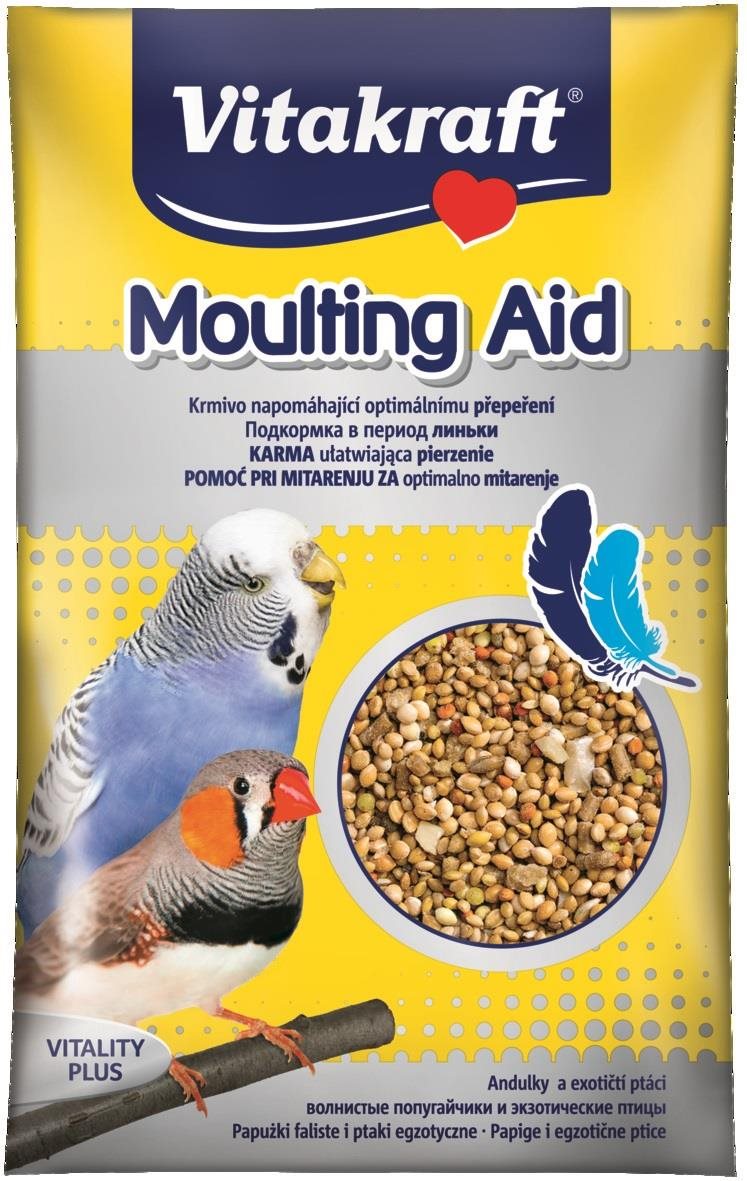 Doplnok stravy pre vtáky – pre andulky, na zvýraznenie farby, podporuje preperovanie, s orechmi, hmotnosť 0,02 kg Perličky na preperenie Vitakraft sú doplnkovým krmivom pre andulky, malé papagáje a okrasné vtáctvo. Táto vyvážená zmes obilnín, pečiva a orechov je obohatená o vitamíny, minerály a metionín a prispie