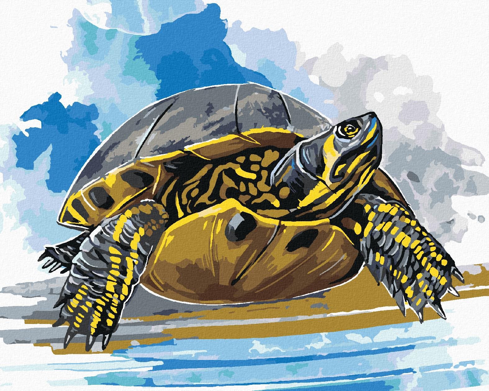 Maľovanie podľa čísel – tematika zvieratá, veľmi ľahká náročnosť, plátno, súprava štetcov, farby a vymaľovaný vzor súčasťou balenia, s rámom a s napnutím plátna, rozmery 100 × 80 cm (V׊) Kľúčové vlastnosti maľovania podľa čísel Vodná korytnačka, 80 × 100 cm, plátno napnuté na rám Maľovanie podľa čísiel je ako stvorené pre umelecky zameraných jedincov Materiálom plátna je drevo a ľan R