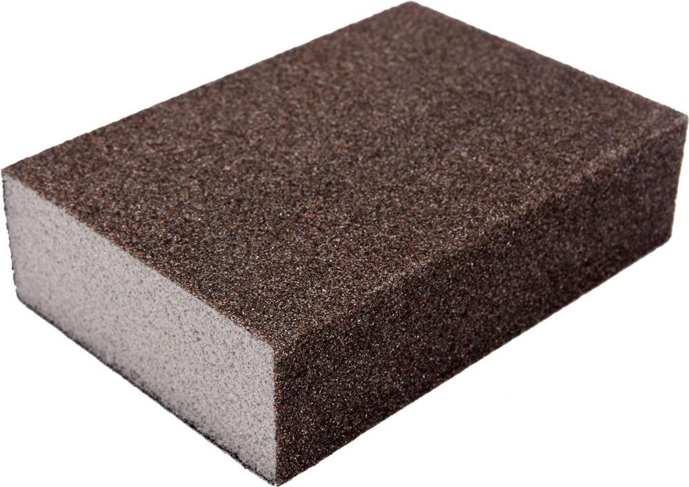 Brúsna hubka – na plast, 4 brúsne strany, materiál posypu je korund, zrnitosť 60, používa sa zasucha, jadro tvorí PU pena s rozmermi 25 × 68 × 100 mm (V׊×H)