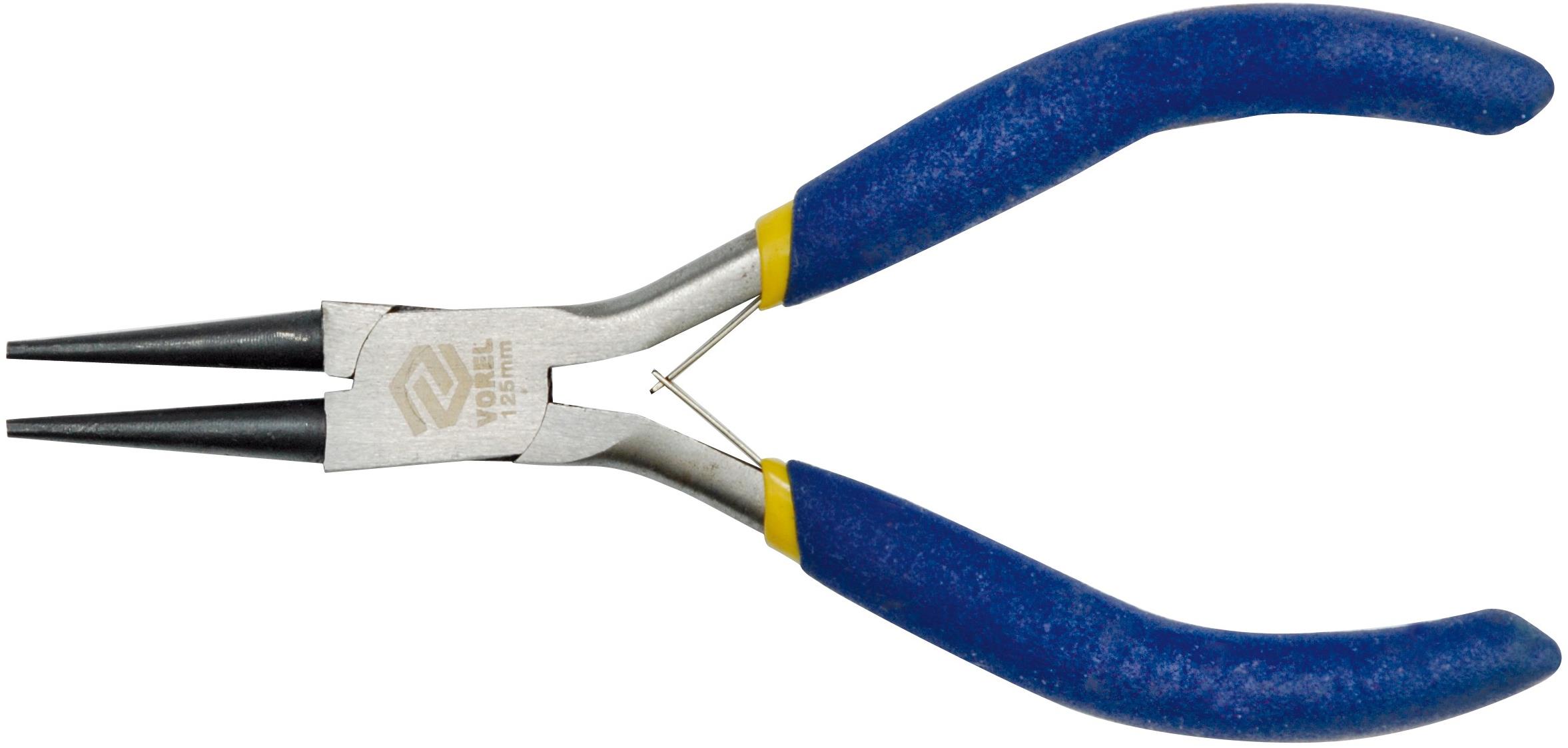 Okrúhle kliešte – priame čeľuste, hladké úchopové plochy, materiál uhlíková oceľ, dĺžka 125 mm Mini kliešte VOREL okrúhle priame 125 mm sú ideálnym nástrojom pre jemné ručné práce v domácej dielni. Ponúka tvarovacie, úchopové a štiepacie funkcie, pričom okrúhle kužeľovité čeľuste majú priemer