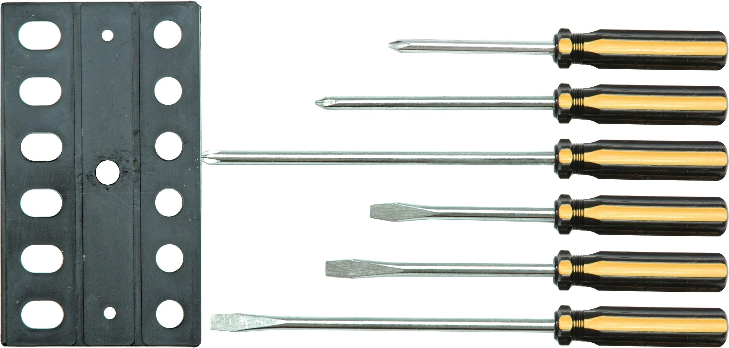 Sada skrutkovačov – ploché, krížové, odizolované rukoväti, materiál drieku CrV oceľ, 6 skrutkovačov v balení Súprava skrutkovačov VOREL TO-64090 obsahuje 6 kusov kvalitných skrutkovačov, z toho 3 ploché a 3 krížové, ktoré pokrývajú najčastejšie potreby pri montážach a opravách. Skrutkovače sú vyrobené z pevn