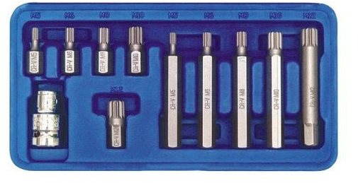Sada bitov – jednotypová, torx TH a torx TX, vo veľkosti M5, M6 a M8, materiál CrV, pochrómovaná úprava, v balení 11 bitov, v kovovom zakladači Kľúčové vlastnosti sady viaczubých bitov CrV VOREL TO-66770, 11 ksSúprava 10 ks viaczubých bitovBity sú vyrobené z chróm-vanádiovej ocele CrVUchytenie HEX 10 mmVhodné na račňu 1/2″ (12,5 mm) × 10 mmOb