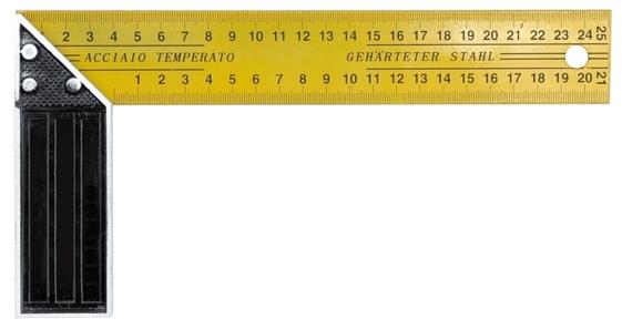 Uholník – tesársky, pevný, dĺžka 30 cm, metrická stupnica, príložník súčasťou, materiál kov Uholník s hliníkovým pätou, rameno z tvrdeného plechu, lakované, žlté s čírou čiernou milimetrovou stupnicou. Uhol kĺbu: 45°Dĺžka: 300 mm