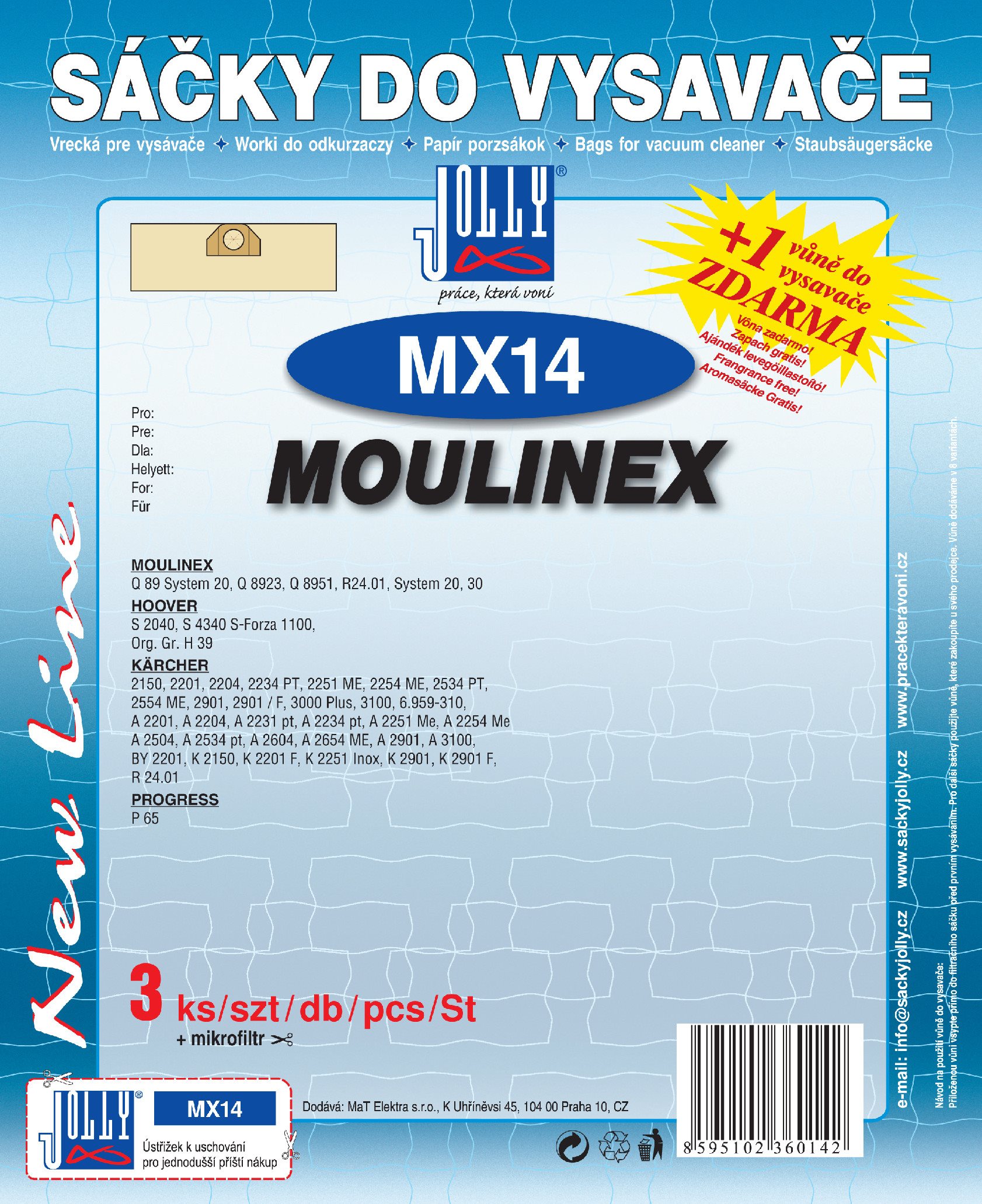 Vrecká do vysávača Jolly – papierové, jednorazové, antibakteriálne, súčasťou balenia je tiež filter a vôňa, 3 vrecká v balení Kľúčové prednosti sáčkov do vysávača Vrecká do vysávača MX14 Sáčky do vysávača Jolly umožňujú vysávaču pracovať so stálym sacím výkonom až do úplného zaplnenia Použitie vrecka do vysávačov je jednoraz