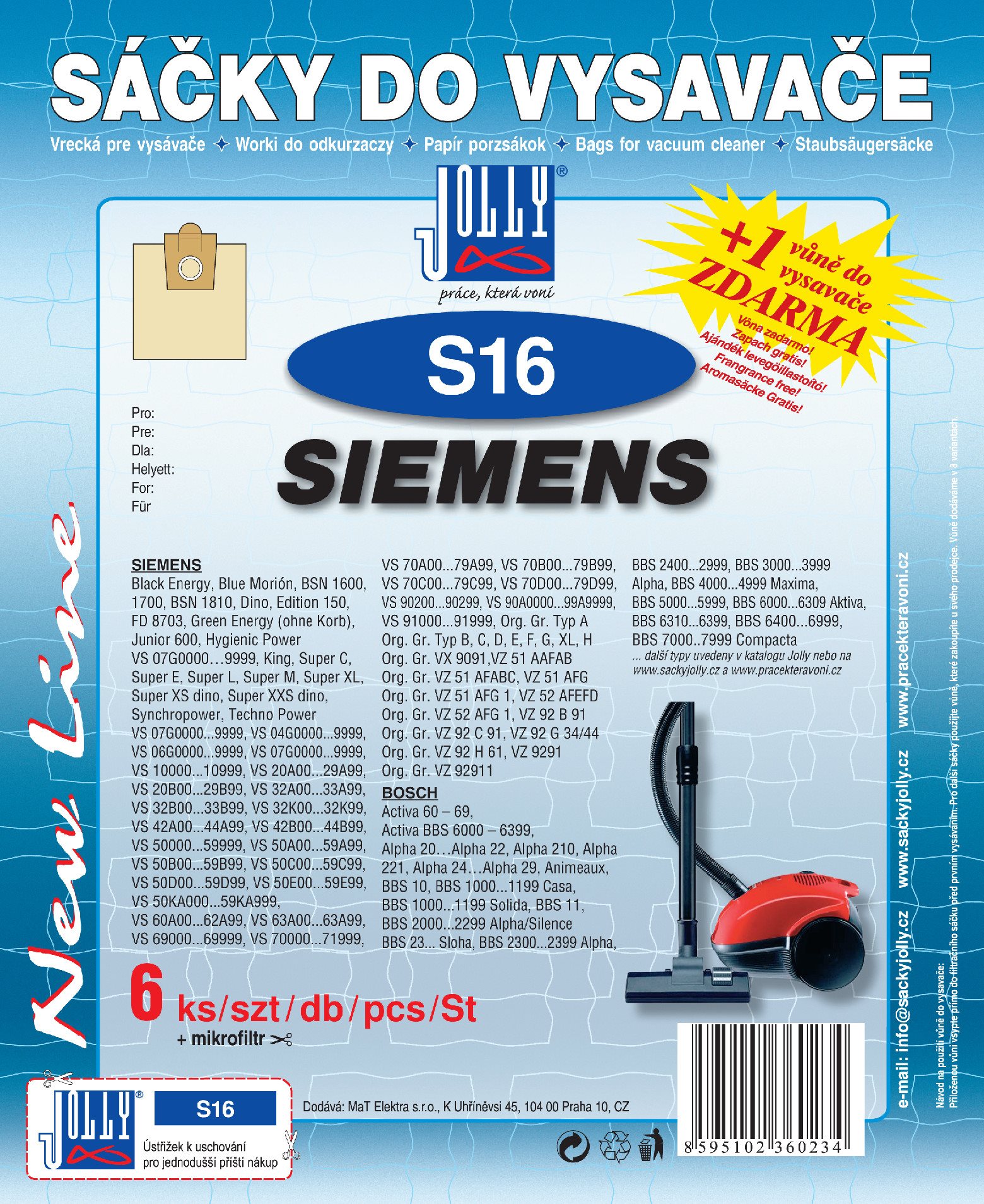 Vrecká do vysávača Jolly – papierové, jednorazové, antibakteriálne, súčasťou balenia je tiež filter a vôňa, 6 vreciek v balení Zásadné prednosti sáčkov do vysávača Vrecká do vysávača S16 Sáčky do vysávača Jolly poskytujú vysávaču priestor na stály sací výkon, kým sa nezaplnia Použitie vrecka do vysávačov je jednorazové Papier