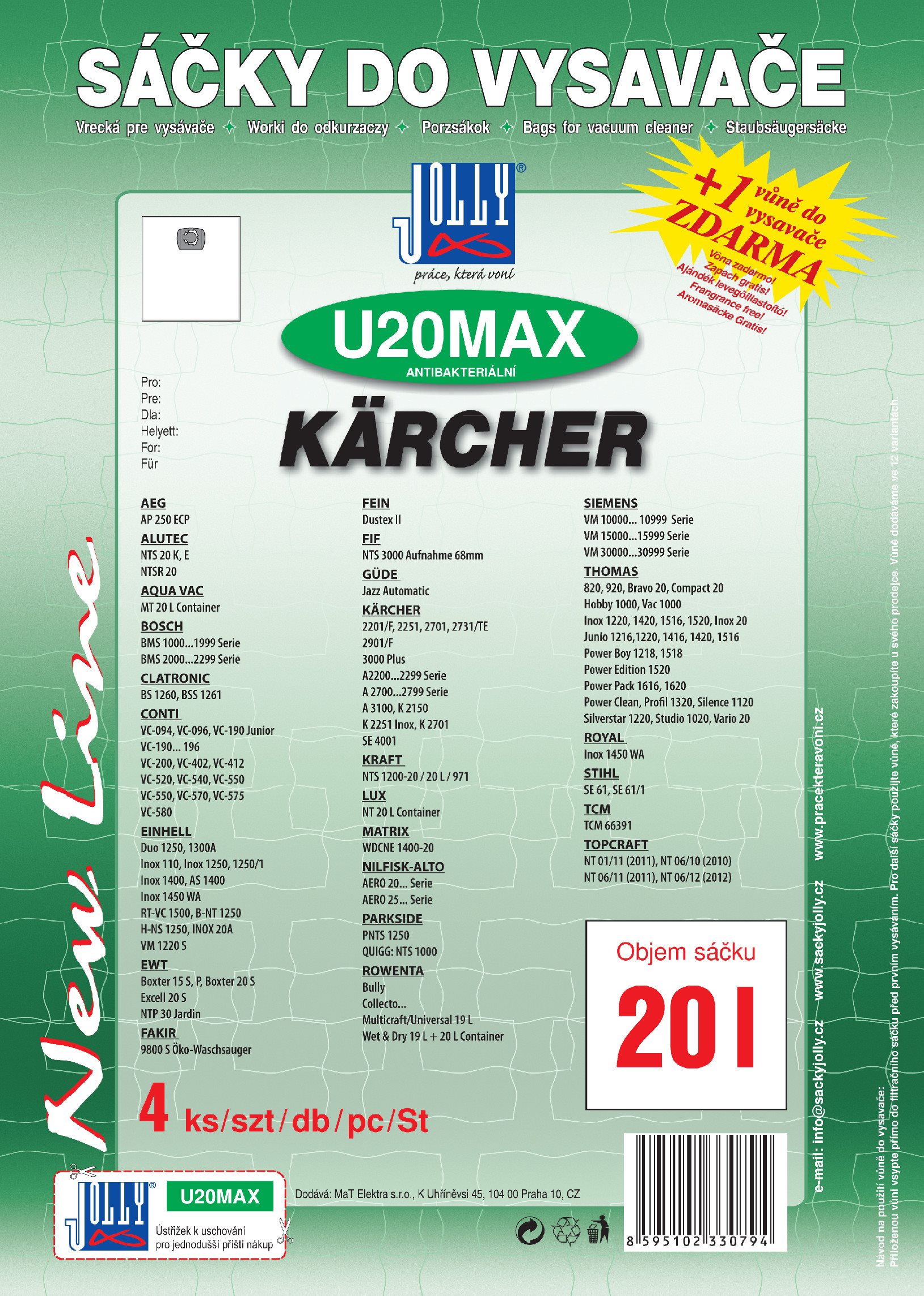 Vrecká do vysávača Jolly – textilné, jednorazové, antibakteriálne, 4 vrecká v balení Zásadné prednosti sáčkov do vysávača Vrecká do vysávača U20 MAX – 20 litrov Sáčky do vysávača Jolly ponúknu priestor pre nečistoty až do svojho úplného naplnenia Použitie vrecka do vysávačov je jednor