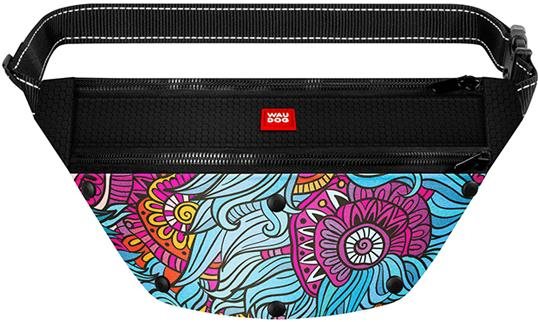 Pamlskovník – pre psa, ľadvinka, okolo pása, uzatváranie na zips, objem 5,6 l, materiál nylon a polyester, nepremokavý, odolný voči špine, rozmery 33 × 17 × 10 cm (V׊×D), čierna farba Ľadvinka Waudog s letným motívom s dvoma priestrannými vreckami na zips ponúka priestor nielen na maškrty, ale aj kľúče alebo vrecká na exkrementy. Vonkajší nepremokavý materiál chráni obsah pred dažď