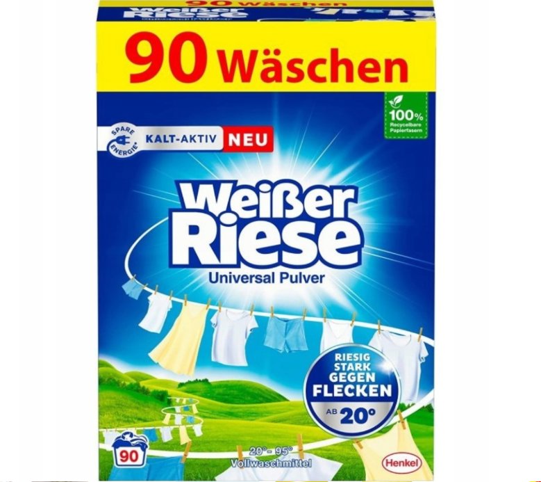 Prací prášok – vhodná farebná a biela bielizeň, na bežné pranie, vystačí na 90 praní, hmotnosť 6000 g Prací prášok WEISSER RIESE Universal poskytuje výnimočnú čistiacu silu a dlhotrvajúcu sviežosť. Vďaka studenému aktívnemu zloženiu účinne odstraňuje škvrny už pri teplote 20 °C, vďaka čomu šetrí energ