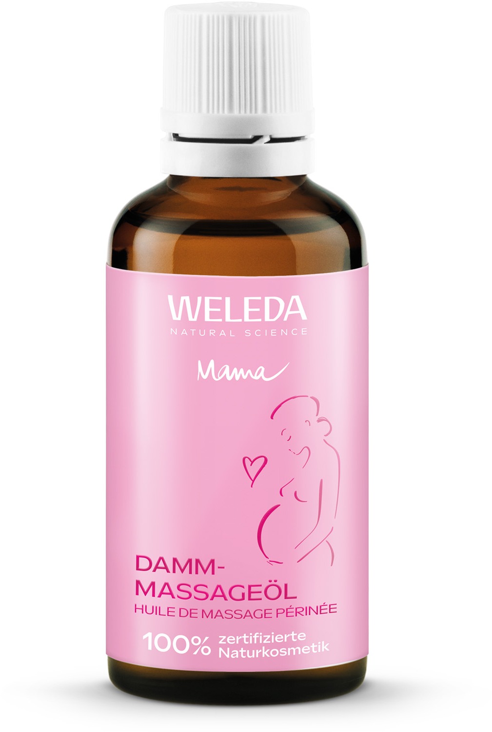 Masážny olej – aktívne látky mandľový olej, prírodné oleje a vitamín E Čisto prírodný olej vyvinutý WELEDA špeciálne na masáž citlivej oblasti hrádze v období pred pôrodom. Jemná kompozícia mandľového oleja, oleja z pšeničných klíčkov a ďalších ošetrujúcic