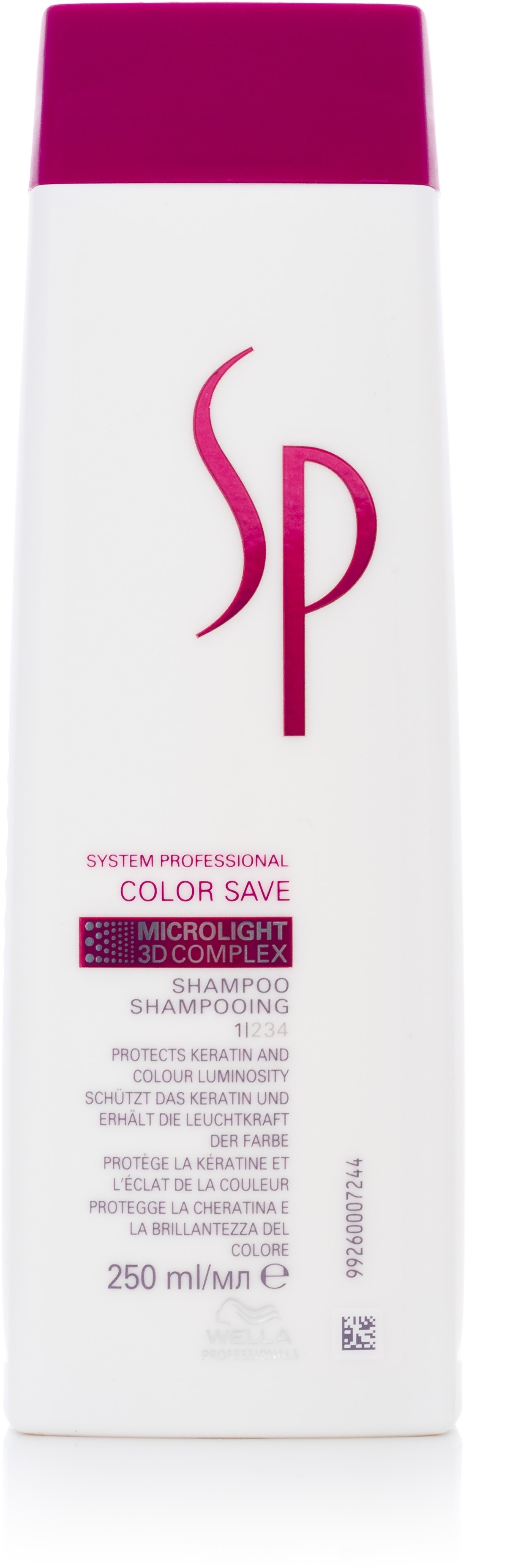 Šampón pre ženy – tekutý, na farbené vlasy, objem 250 ml, profesionálny Hľadáte šampón, ktorý udrží farbu vašich vlasov dlhšie žiarivú a lesklú? Šampón WELLA PROFESSIONALS SP Color Save je navrhnutý na starostlivosť o farbené vlasy, ktorým poskytuje ochranu pred vyblednut