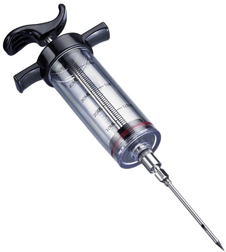 Marinovacia ihla – plastová, objem 50 ml, dĺžka 22,5 cm, priemer 7,8 cm Ihla na marinovanie Westmark poteší všetkých milovníkov šťavnatých steakov. Pomocou ihly ľahko aplikujete marinádu priamo do mäsa, čo zintenzívni jeho chuť pri ďalšej tepelnej úprave. Ihla je
