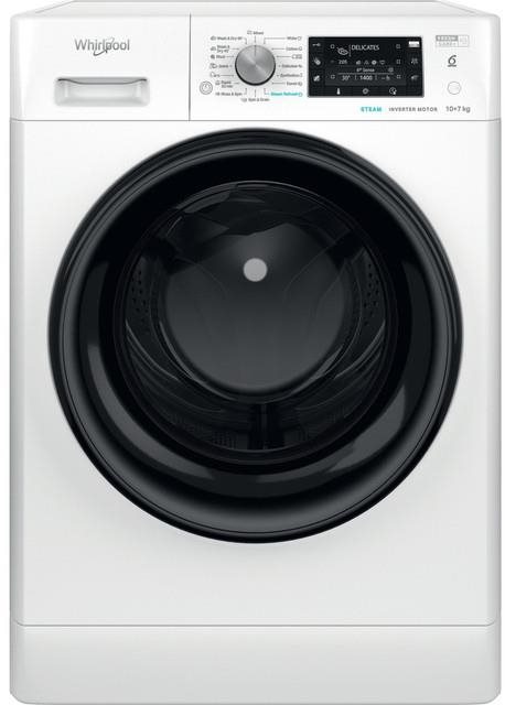 Práčka so sušičkou spredu plnená, hlavné funkcie: hmotnostná automatika, starostlivosť o bielizeň po praní a parné ošetrenie bielizne, špeciálne technológie: 6, zmysel, SteamCare a FreshCare+, 1600 ot./min pri odstreďovaní, 85 × 59,5 × 63,5 cm (V׊×H) Práčka so sušičkou WHIRLPOOL FFWDD 1076258 BV EUWHIRLPOOL FFWDD 1076258 BV EU je voľne stojaca práčka so sušičkou, ktorá zvládne pranie až 10 kg a sušenie až 7 kg bielizne a ponúka maximálne otáčky 1